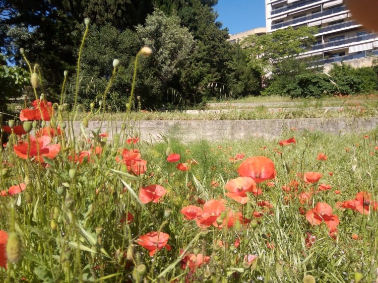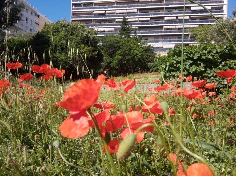 C’est bien à Marseille que vous pouvez adimrer tous ces coquelicots d’un rouge écarlate et scintillant au soleil (de Marseille, mais je me répète quelque part). Et plus exactement, c’est dans le 6eme !