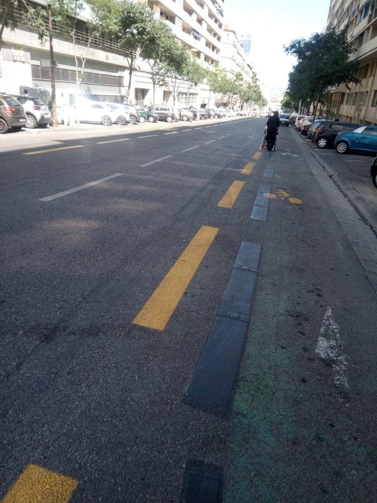 Divers travaux temporaires (lignes jaunes) liés à des morceaux de pistes ou bandes cyclables ont, manifestement, également été réalisées sur diverses autres rues, avenues, boulevards de Marseille.
